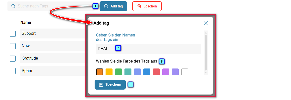 5. Wählen Sie die Tag-Farbe und klicken Sie auf 'Speichern'.