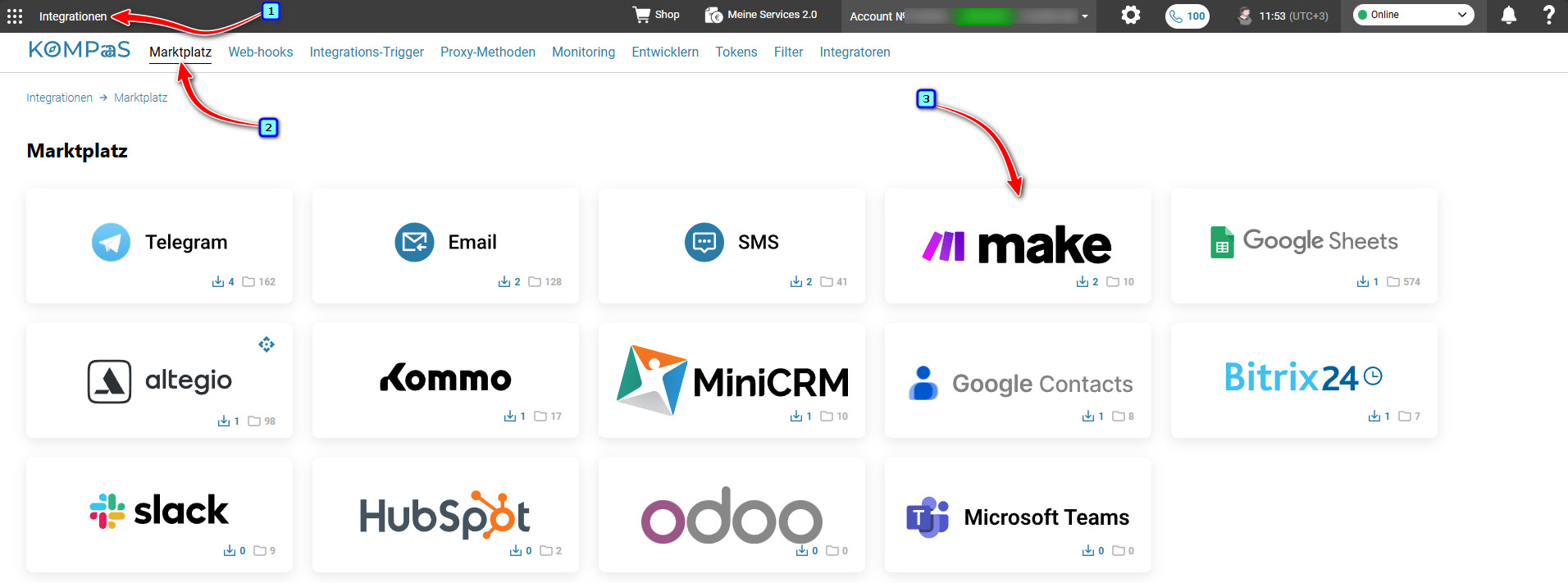 Installation der KOMPaaS-Integration im Make-Konto