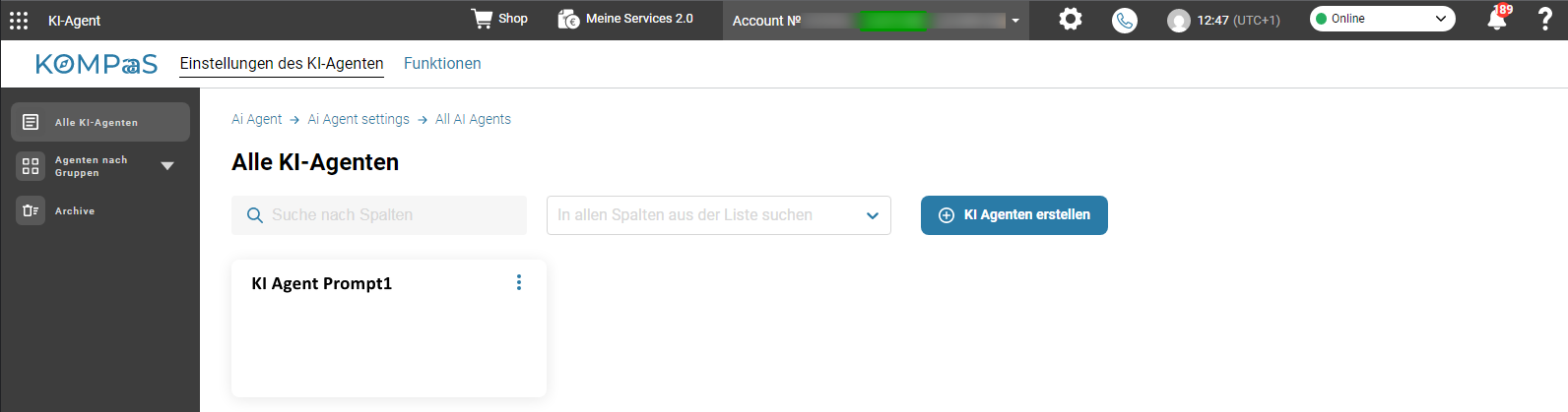 Der KI-Agent von KOMPaaS – Ihr universeller virtueller Helfer, der 24/7 Kunden berät, Routineaufgaben übernimmt und die Support-Abteilung spürbar entlastet. Mehr dazu unter ‚’KI-Agenten aktivieren‘.