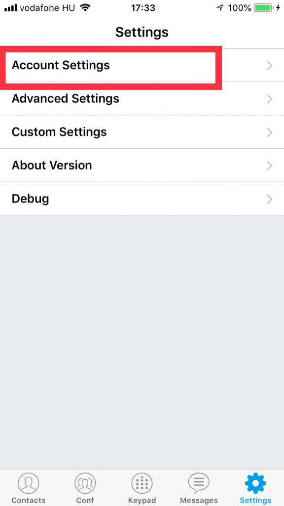 3. Select SIP Account.