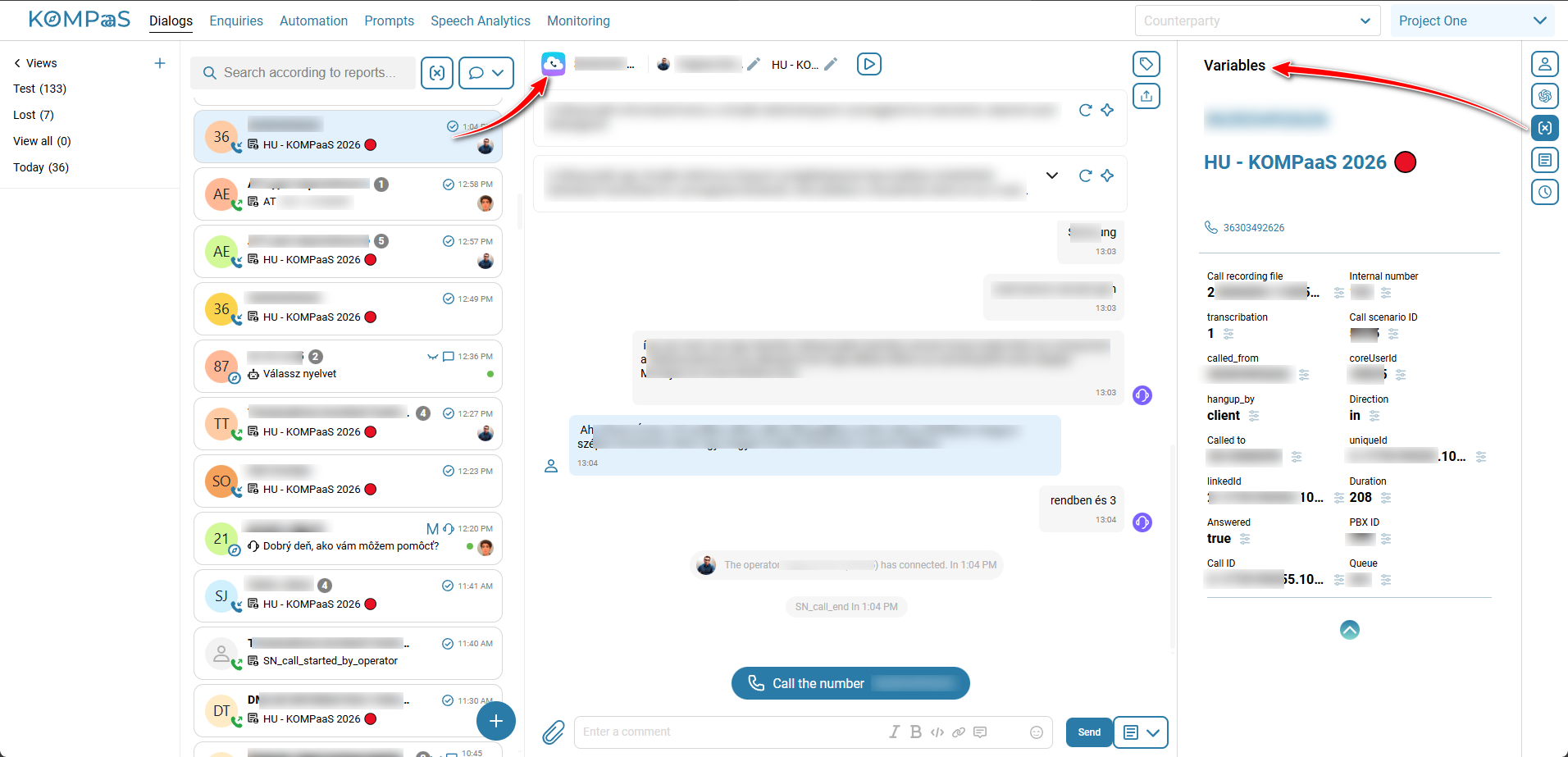 - Viewing variables for the dialog. See 'Contact Center AI → Dialogs → Additional Options'.