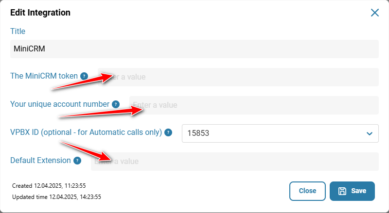 Next, fill in the details from MiniCRM. For this go to Settings | System | API/Integrations.