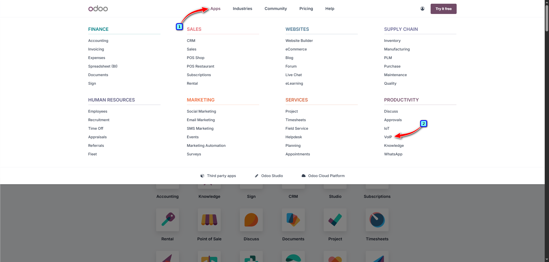 Open the 'Apps' tab and select 'VoIP'.