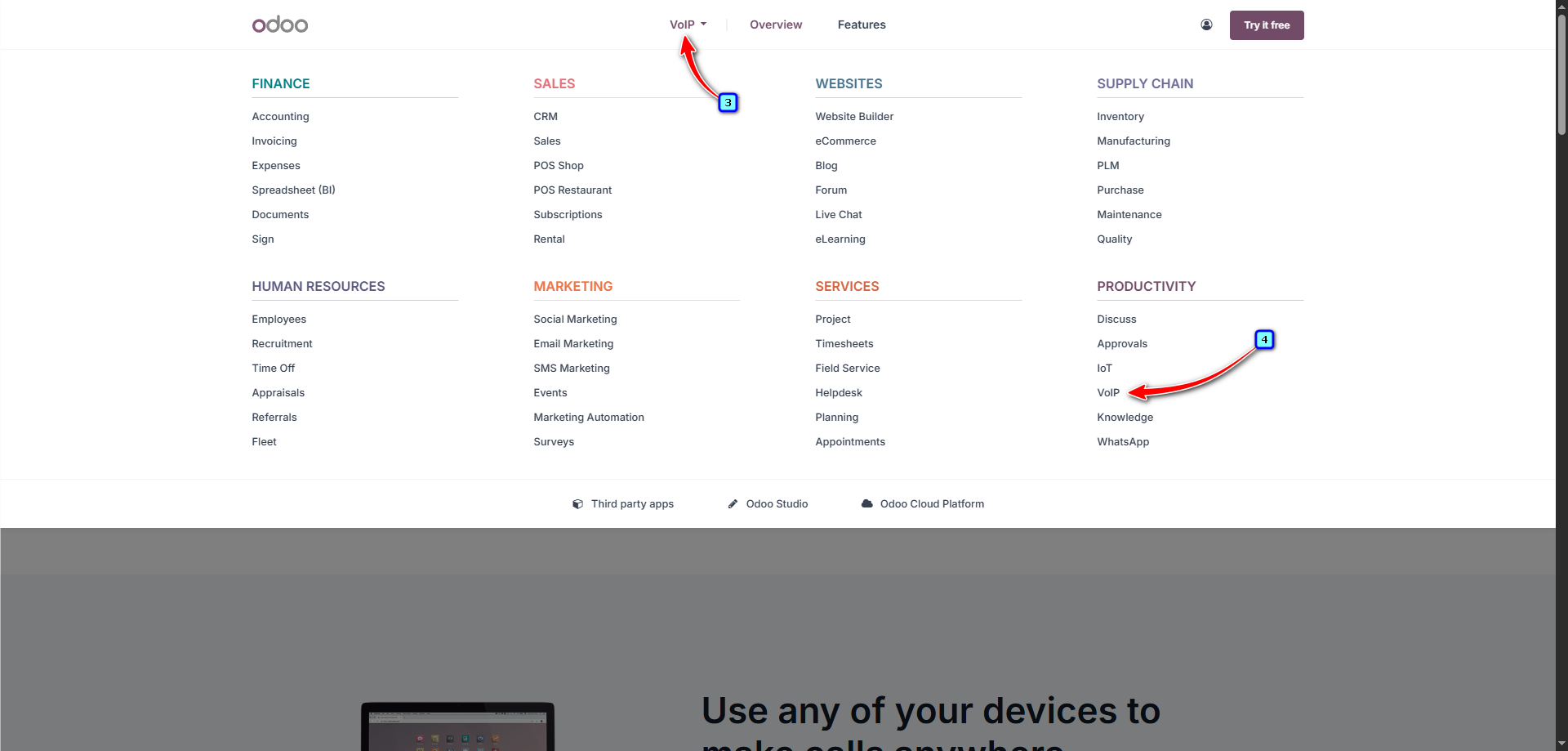 Then on the 'VoIP' tab, select the module. In this example, 'VoIP'.