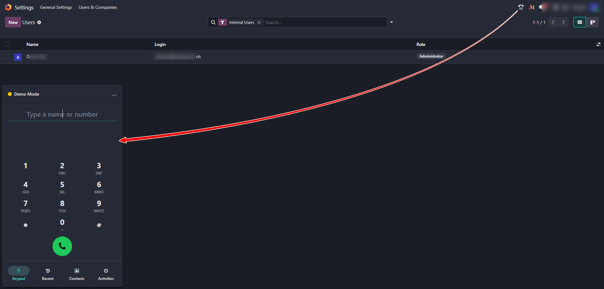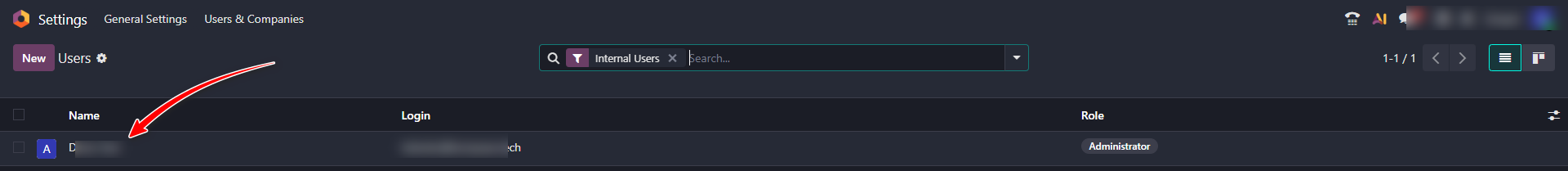 Navigate to the 'Users & Companies' section → 'Users'.