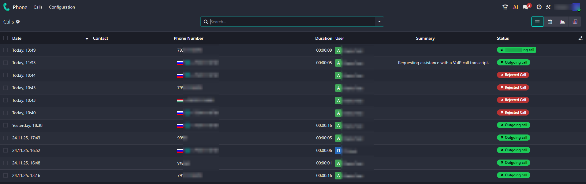 - Call Recordings;