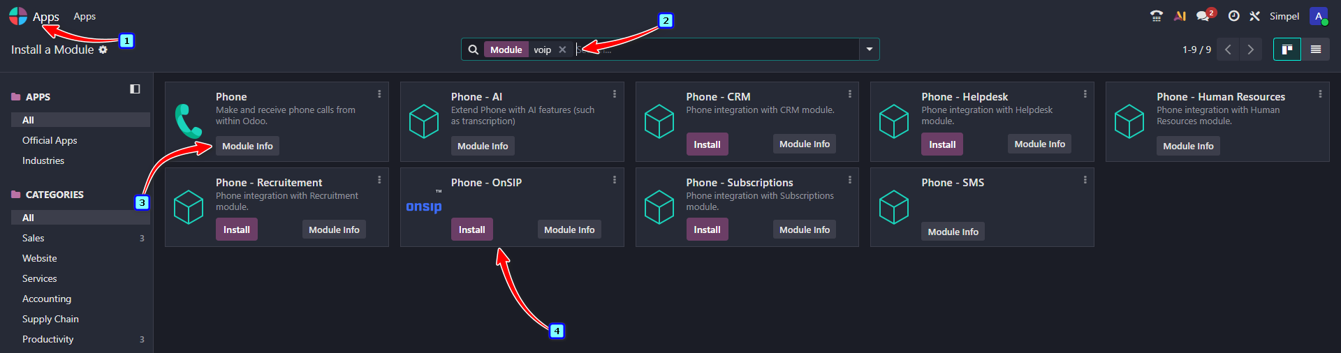 Install the VoIP module: