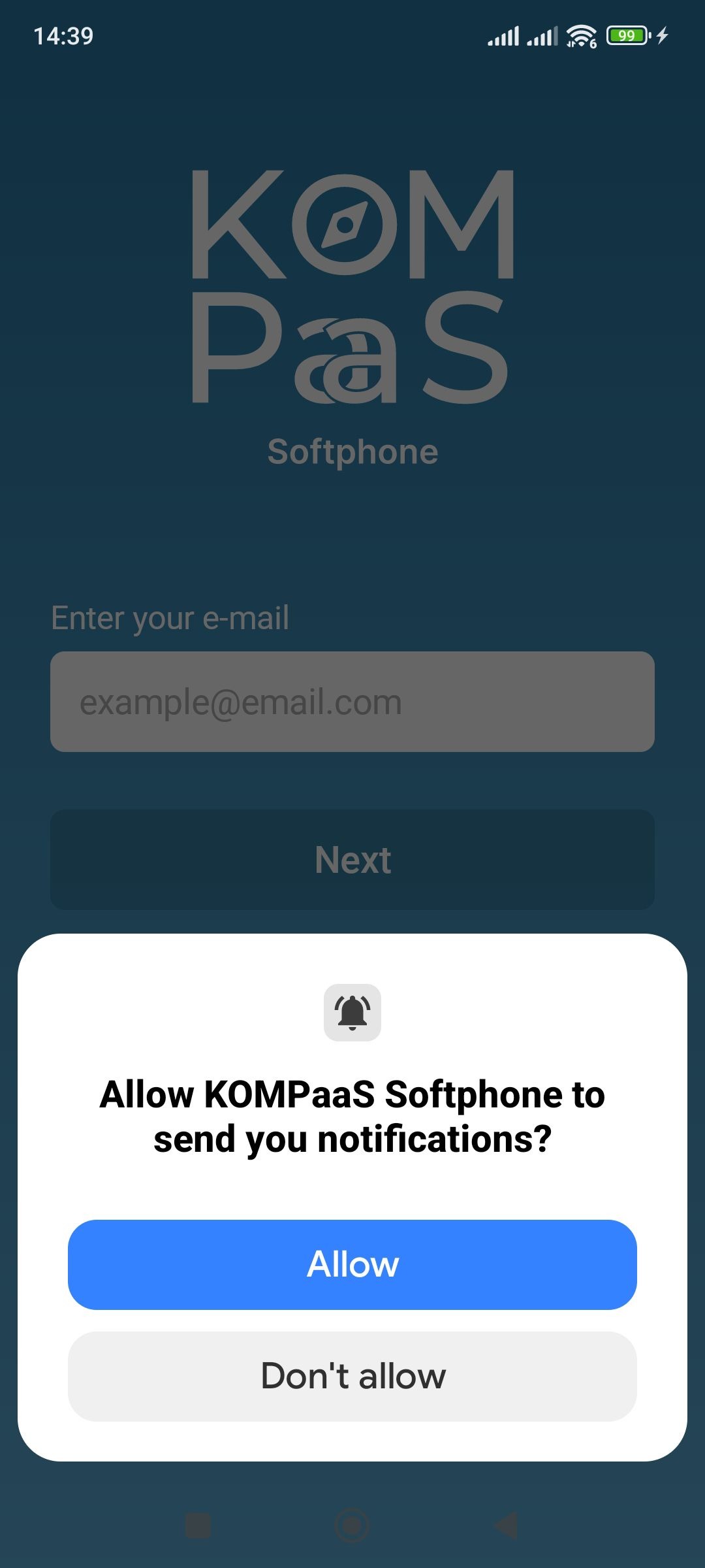 Allow the application to be a pop-up window. This is necessary for receiving incoming calls if you are using the built-in call handling instead of the system's. The built-in call handling is recommended for most phone models.