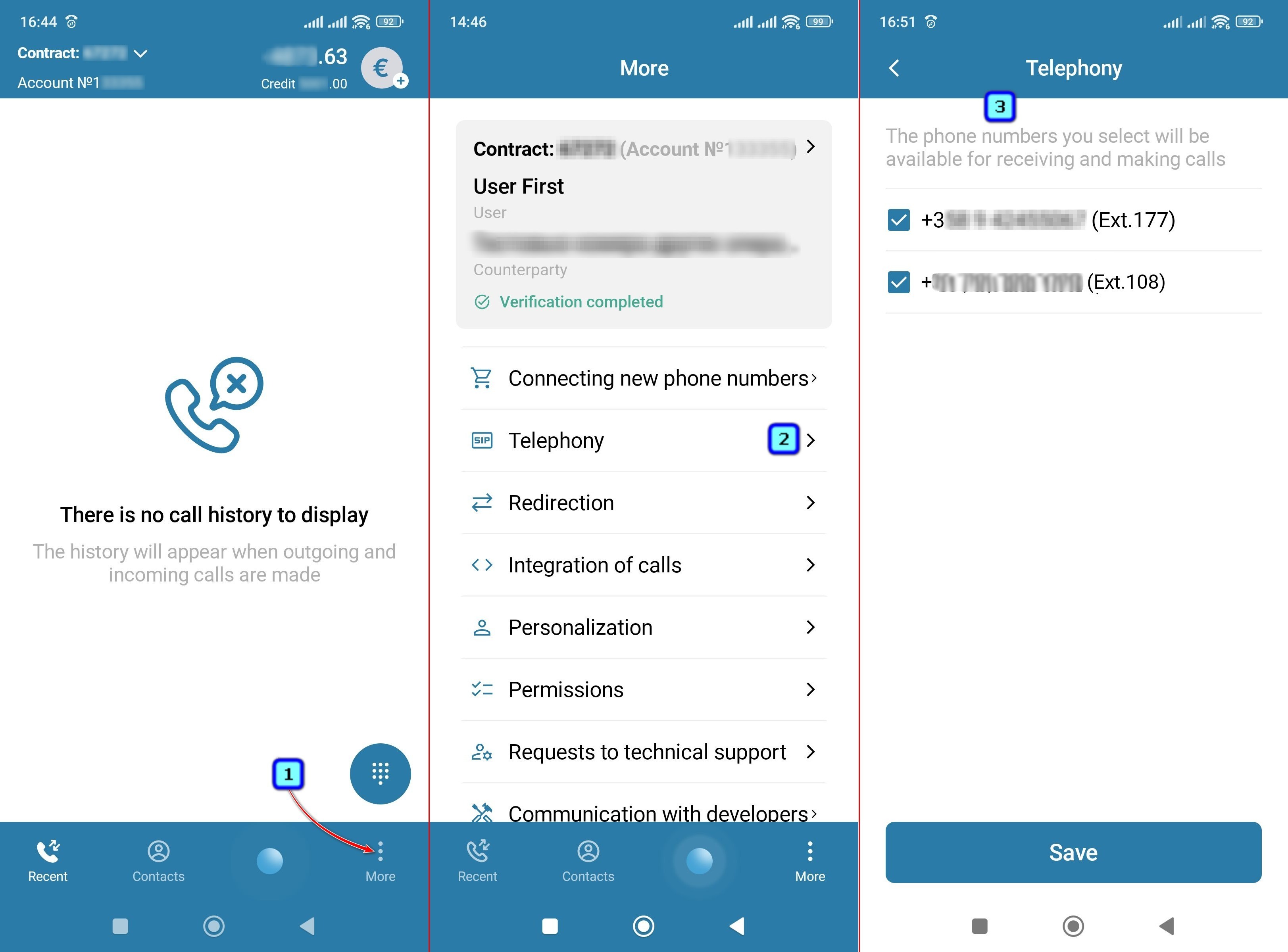 If you have more than one phone number, you can select the numbers you want to use in the application by checking the boxes in the "Telephony" section.