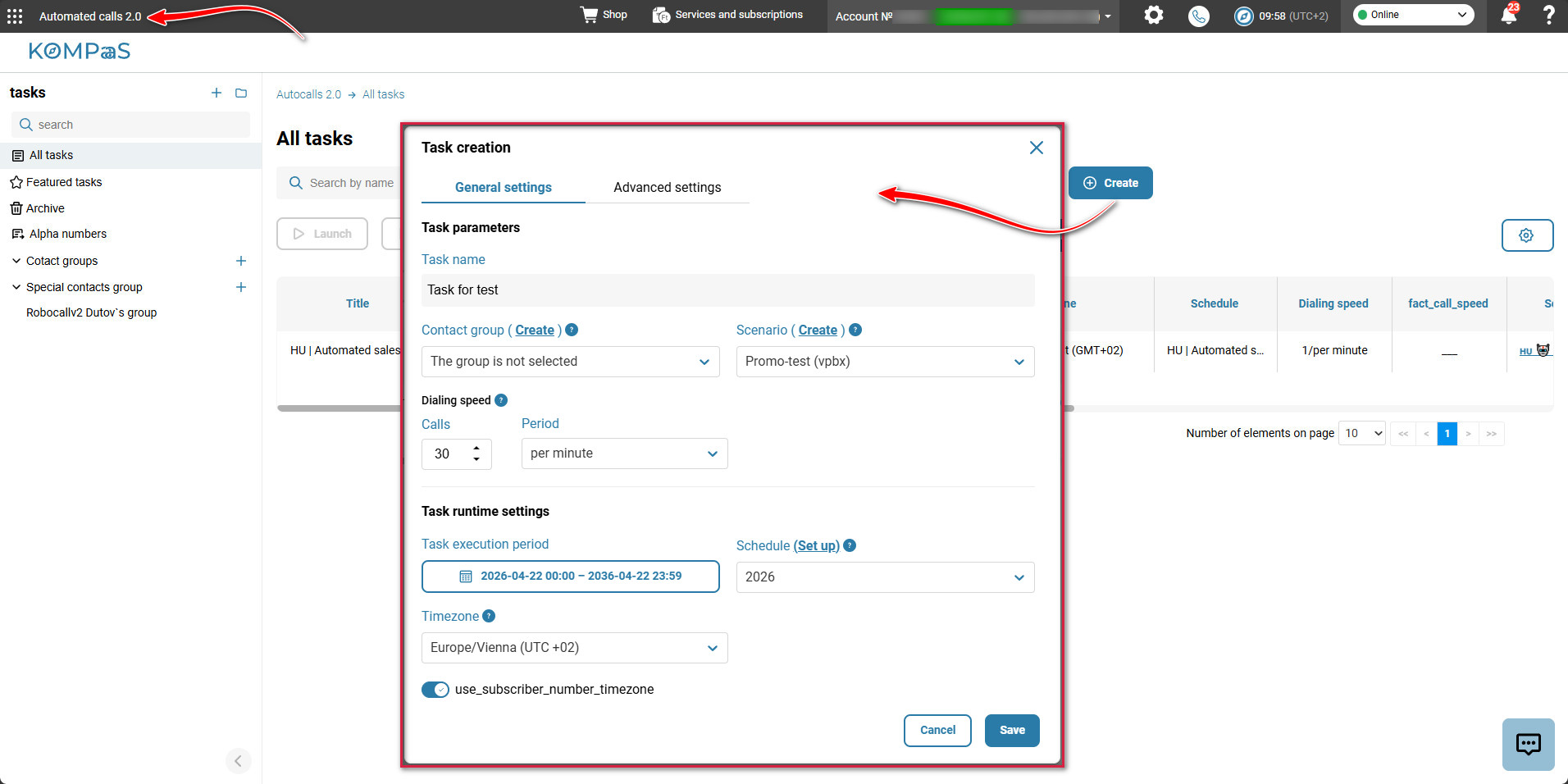 Use subscriber number timezone — if enabled, calls are made taking into account the subscriber’s time zone. I.e., the call will not be made at night.