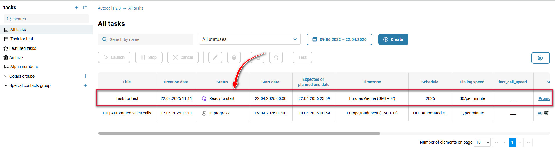 - Create a contact list in “Automated calls 2.0” → “Contact groups”. See "Automated calls 2.0 → How to create contacts".