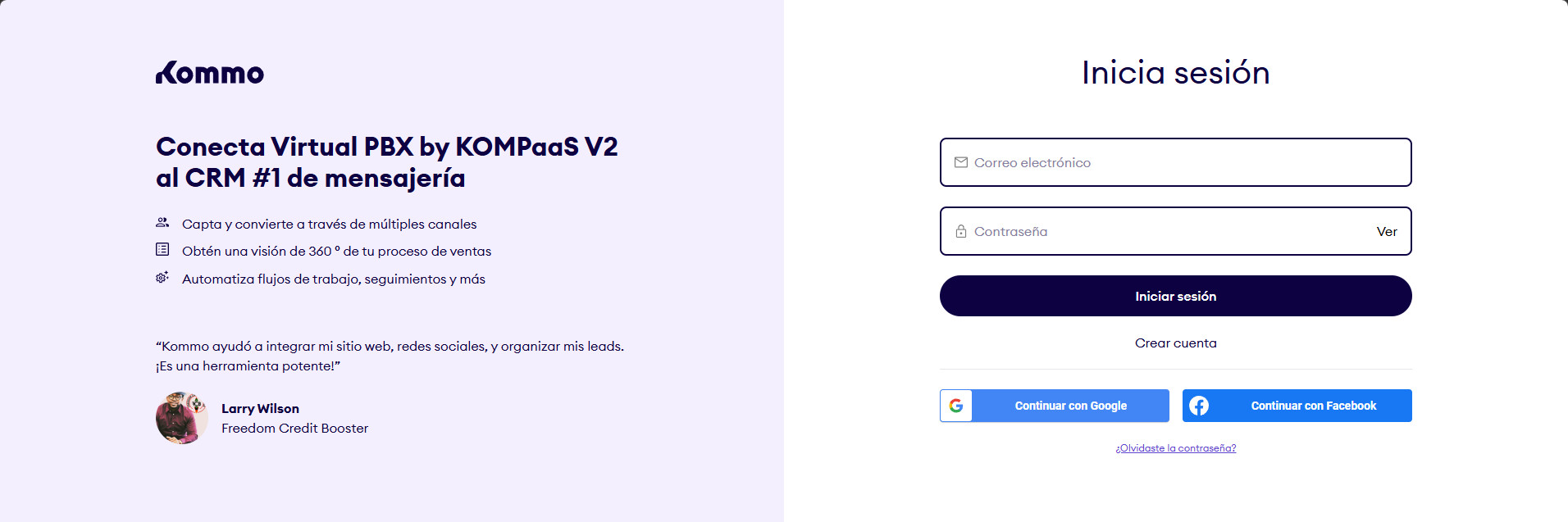 Se le redirigirá a la página de autorización registro de 'Kommo'.