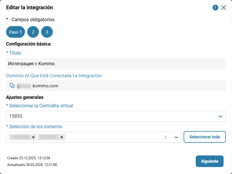 Dominio Al Que Está Conectada La Integración — dominio de Kommo al que está conectada la integración. Este campo no es editable.