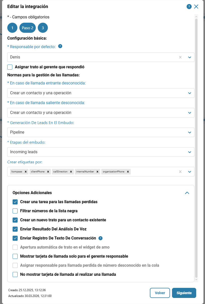 Asignar trato al gerente que respondió — esta opción permite asignar automáticamente el lead al gerente que respondió la llamada.