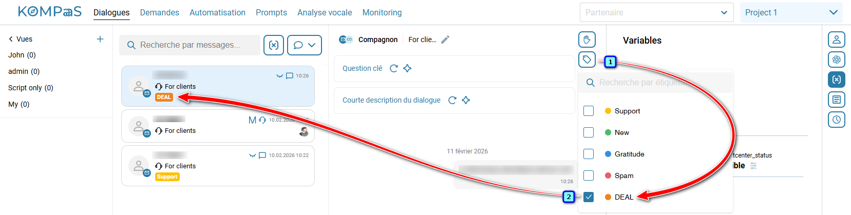 • Le tag est attribué dans la section 'Dialogues'.