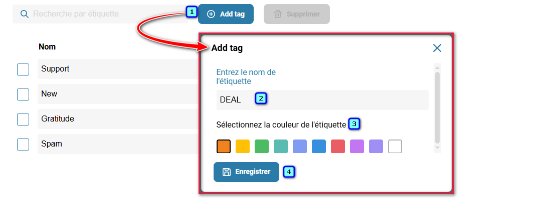 5. Choisissez la couleur du tag et cliquez sur 'Enregistrer'.