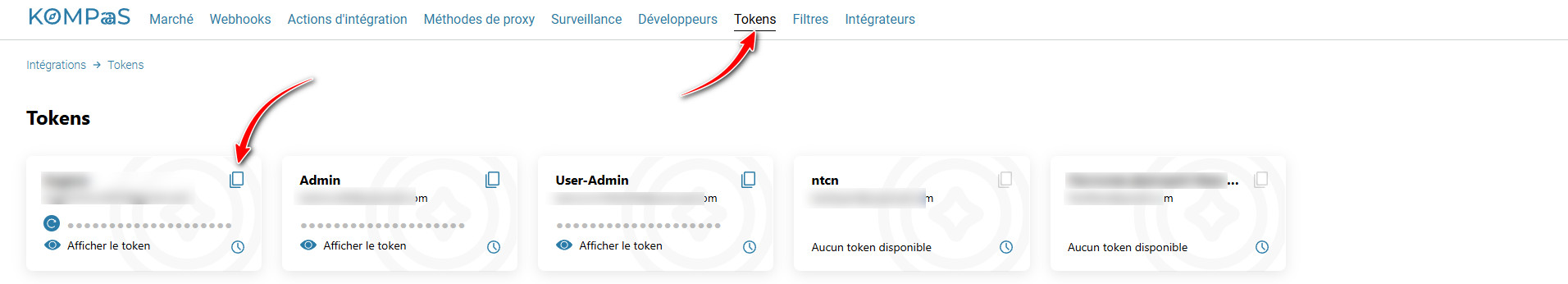 • Clé API (Token) — dans la section «Intégrations»«Tokens».