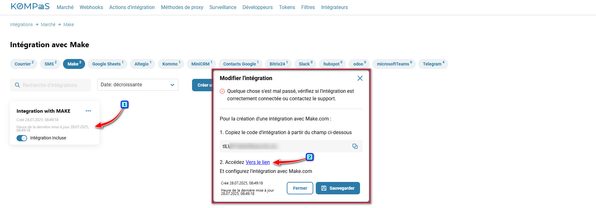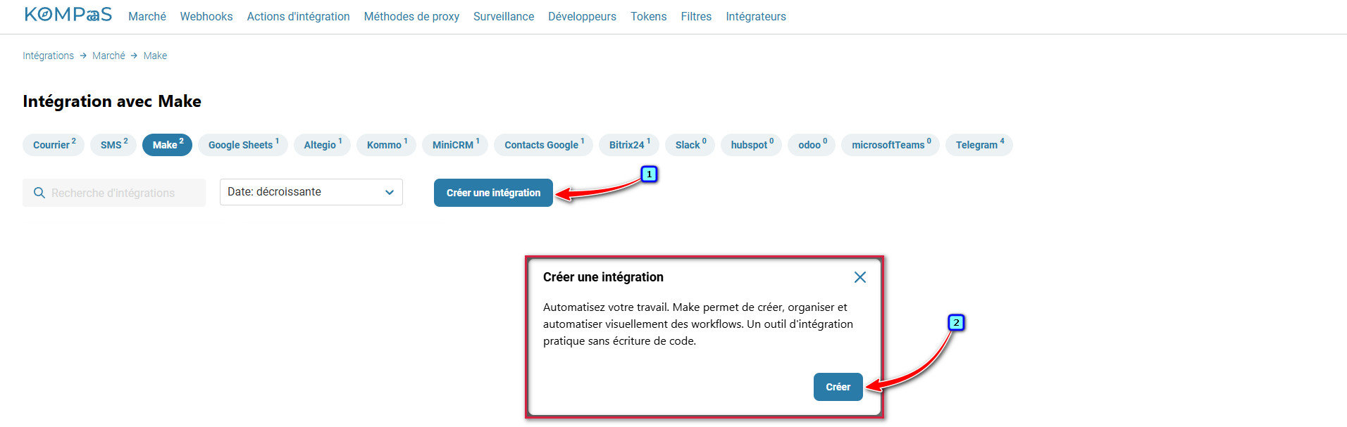 Connexion de l’intégration KOMPaaS à Make