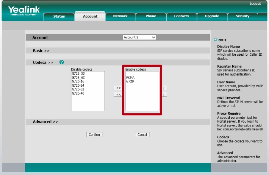 Az MCNtelecom csak a PCMA(G711a) és G729 Kodekeket támogatja.