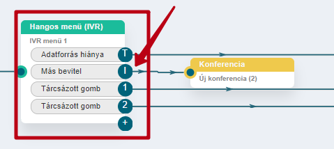 A vállalat telefonszámán, a "Hangmenü" (IVR menü) elem használatával engedélyezze a konferenciába történő átvitelt, amikor az egyik számot tárcsázzák, vagy engedélyezze a további számok tárcsázását (a kliens, a konferencia mellékszámát ismerve, hangjelzéssel tárcsázhatja azt, anélkül hogy végighallgatná az egész hangmenüt).