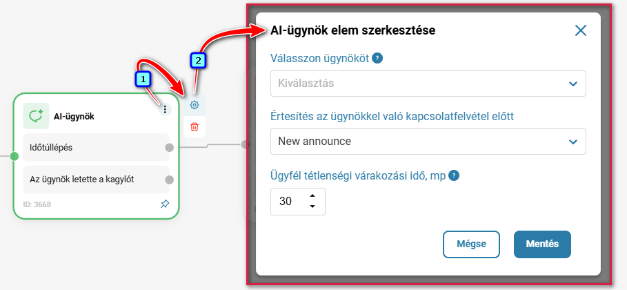 Állítsa be az AI-ügynök paramétereit: