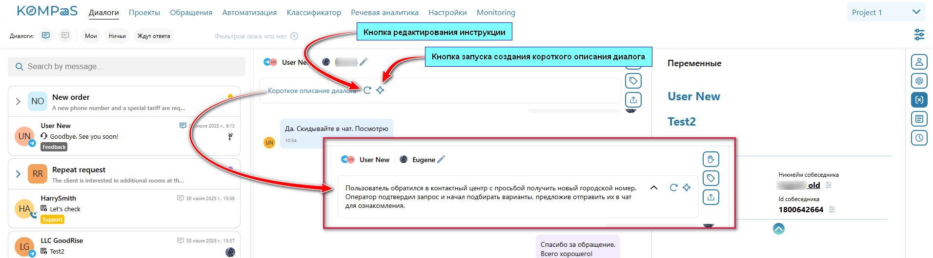Назначение тегов (меток) для упрощения распознавания характера диалога. См. 'Контакт-центр ИИ → Теги';