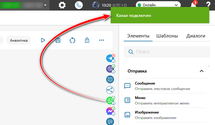 Чтобы получить токен, снова нажмите на иконку канала WhatsApp.