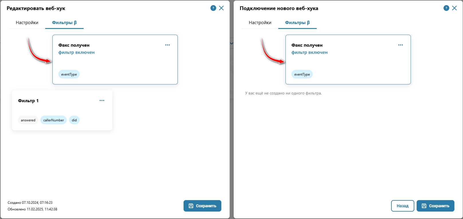 ✅Примечание: Процесс привязки фильтра к веб-хукам и интеграционным триггерам идентичен. |
