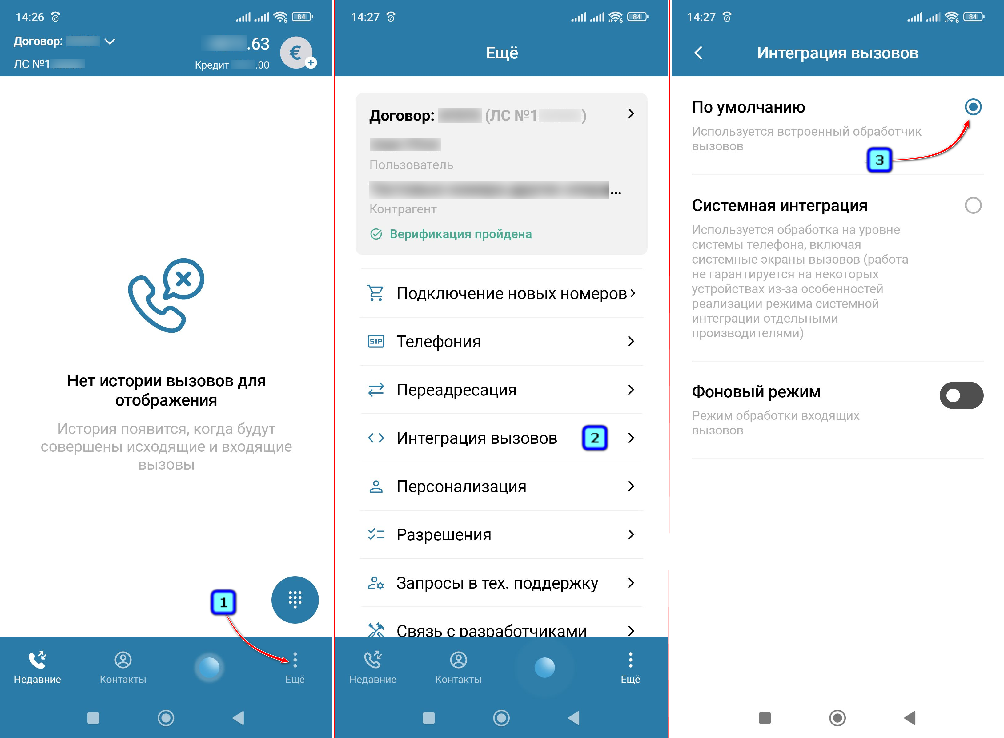 Убедитесь, что настройка ‘Интеграция вызовов’ используется ‘По умолчанию’.
