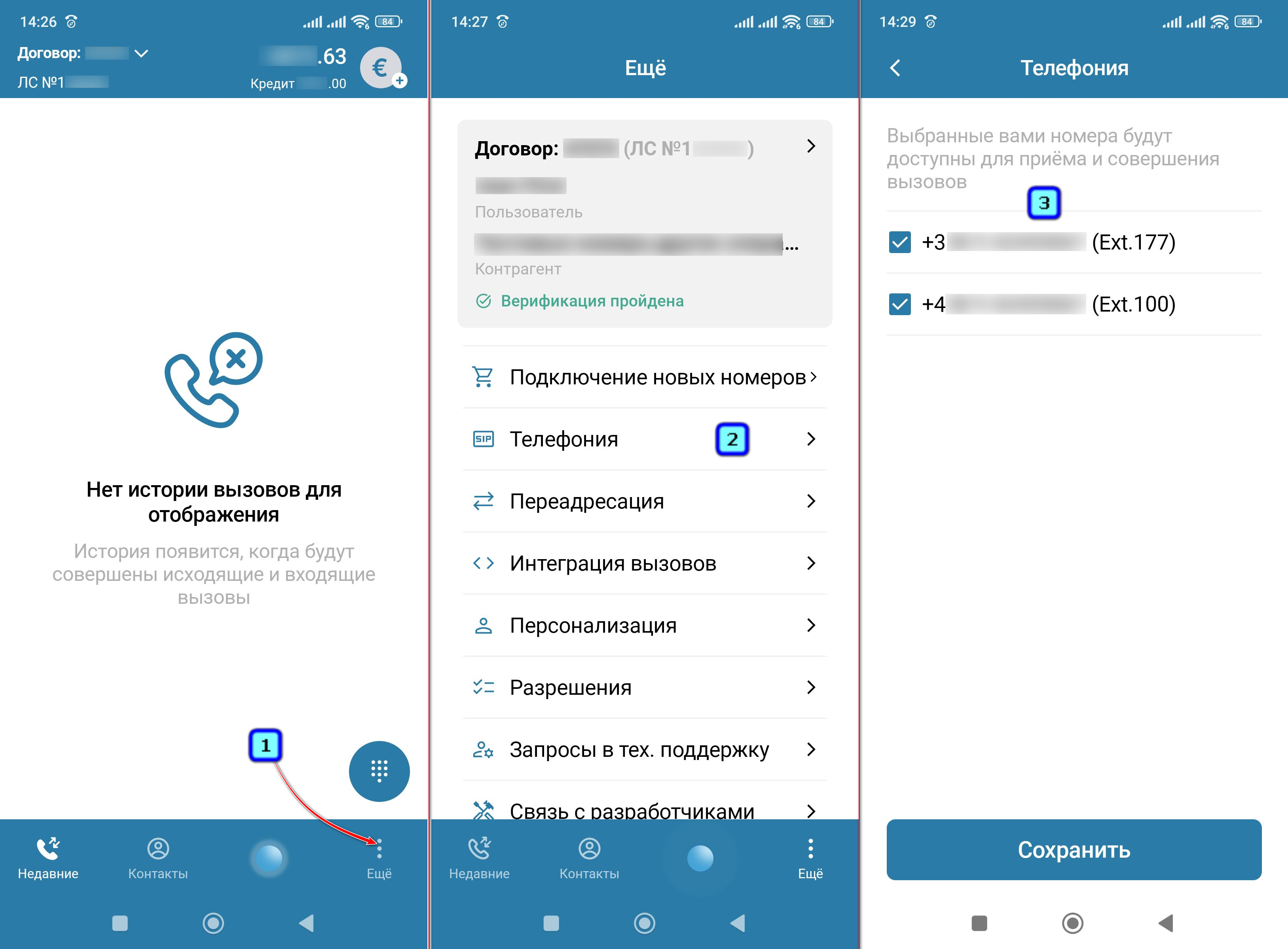 Если у вас более 1 номера телефона, то вы можете в разделе ‘Телефония’ отметить ‘флажками’ те номера, которые хотите использовать в приложении.