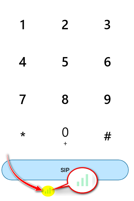 Иконка качества сигнала — должна быть зеленого цвета! Красный цвет (отсутствие связи с сервером) — проверьте настройки SIP и интернет подключение.