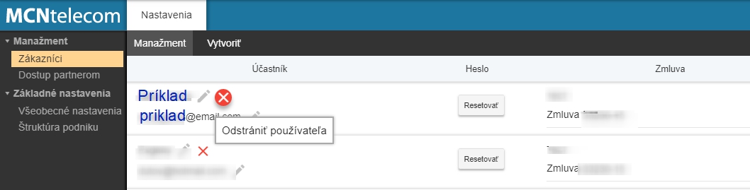 K tomu aby ste mohli odstrániť používateľa z MyMCN účtu postupujte podľa pokynov uvedených nižšie: