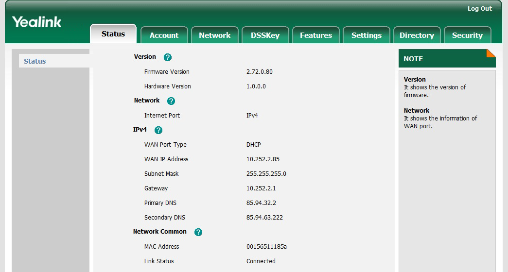 2. Na počítači pripojenom k zariadeniu zapíšte IP adresu telefónu.