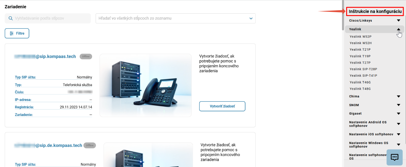 7. Zariadenie – zariadenie, na ktorom bol SIP účet zaregistrovaný naposledy.